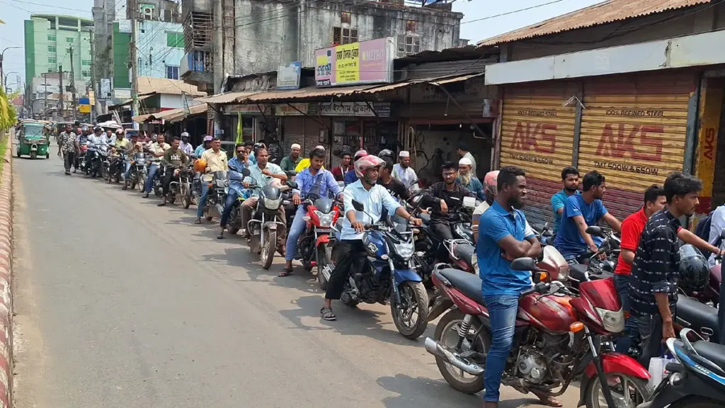 তবে দুপুরে মধ্যেই জ্বালানি তেল শেষ হয়ে যাবে জানিয়ে ওই ব্যবসা প্রতিষ্ঠানের মালিক মো. সেলিম বলেন, গত ৫ তারিখ আমি তেল সংগ্রহ করতে পেরেছি। ওই দিন থেকেই অল্প অল্প করে তেল বিক্রি করছি। আজকে কোথাও তেল না থাকায় আমর এখানে তেল নিতে অতিরিক্ত ভীড় সৃষ্টি হয়েছে। পরে প্রশাসনের সহযোগিতা নিয়ে মানুষকে তেল দিচ্ছি। তবে ৫ তারিখের পর নতুন করে কোনো তেল সংগ্রহ করতে পারিনি। আজ দুপুরের পর তেল শেষ হয়ে গেলে আর পওয়ার সম্ভাবনাও দেখছি না।